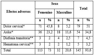 Leyenda: *efectos secundarios, **complicaciones menores.