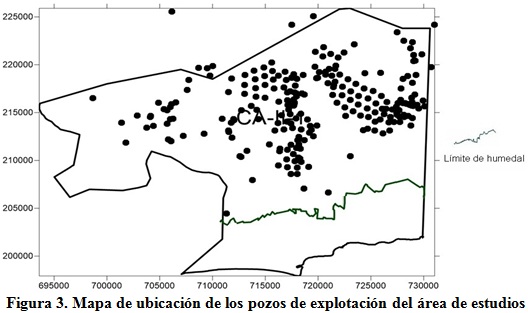Los pozos de explotación ubicados en el área de estudio se muestran en la figura 3.