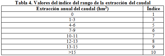 La determinación de los valores del parámetro litológico se basó en los perfiles litológicos de las calas existentes en el área de estudio y los correspondientes al parámetro de extracción del caudal se determinaron a partir de la información obtenida de la red básica nacional y la red informativa de los archivos de la Empresa de Aprovechamientos Hidráulicos (EAH) de la provincia. Se utilizó el valor más alto de explotación con el propósito de obtener el valor más crítico en la estimación de este parámetro considerado uno de los más importantes en la ocurrencia del fenómeno de intrusión salina en acuíferos costeros.