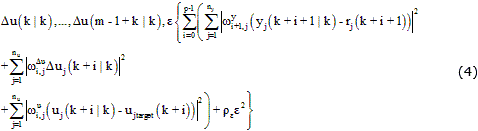 Asumiendo que los estimados de x(k), xd(k) están disponibles en el instante k. La acción de control del controlador predictivo en el instante k se obtiene a partir de la solución de un problema de optimización que se plantea de la forma (4).
