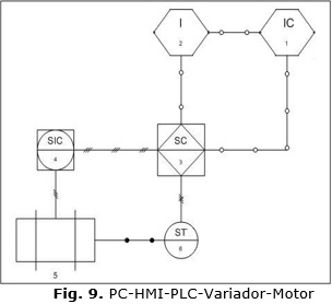 En esta sección se realiza un estudio del control de la velocidad de un motor de inducción con rotor tipo jaula de ardilla mediante la ley de control predictivo MPC que se ejecuta desde MATLAB® en la PC (Personal Computer, en inglés) y a través de OPC-PLC se envía la señal de control al variador de velocidad el cual es el encargado de variar la relación tensión/frecuencia del motor y con esto la velocidad. El diagrama tecnológico de la maqueta empleada para las simulaciones se puede apreciar en la Fig. 9.