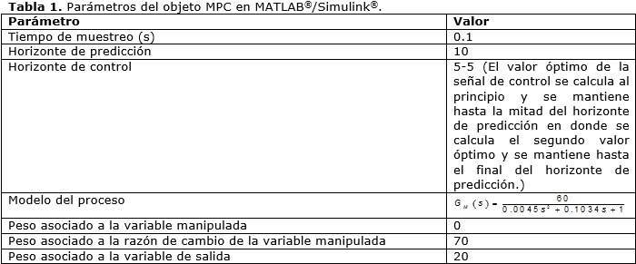 Los parámetros definidos para el controlador diseñado son mostrados en la Tabla 1.