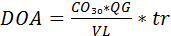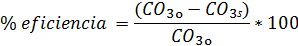 Cálculo de la dosis de ozono aplicada (DOA) en reactor semi continuo y de la eficiencia del reactor.