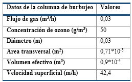 En la Tabla 1 se presenta un resumen de las dimensiones de la columna de burbujeo y de sus condiciones de operación
