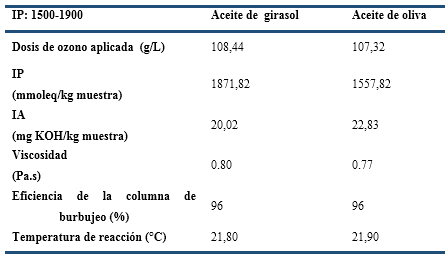 Ozonización de aceite de girasol y aceite de oliva a altos valores de IP.